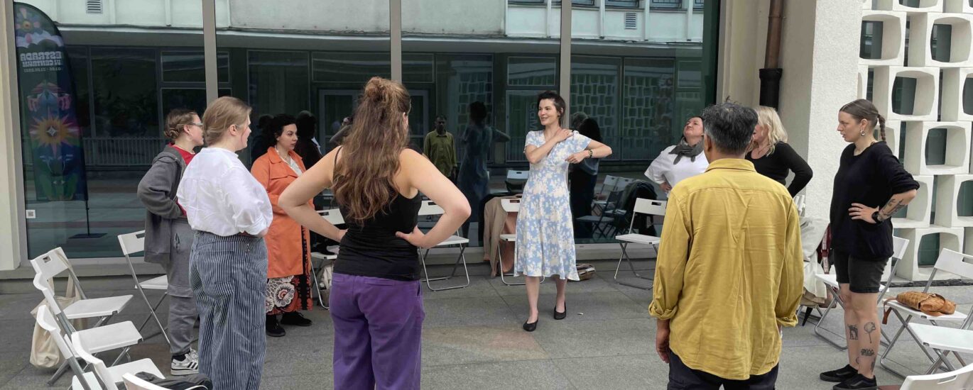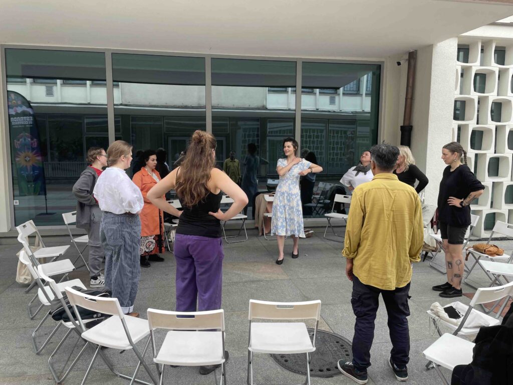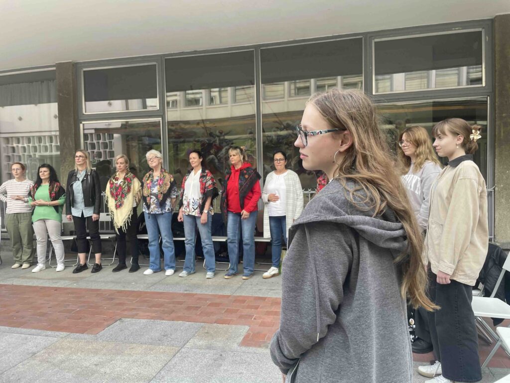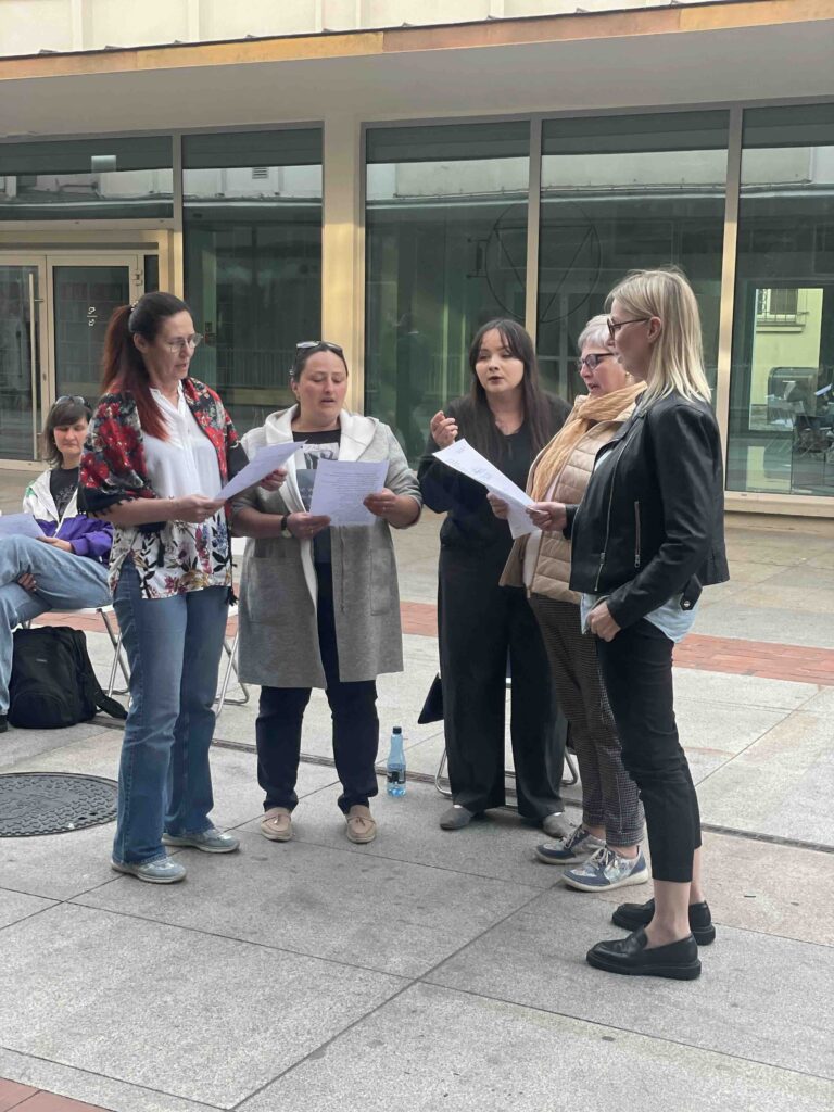 Grupa uczestniczek warsztatów pieśni lubelskich. Prowadzenie: Oliwia Abravesh